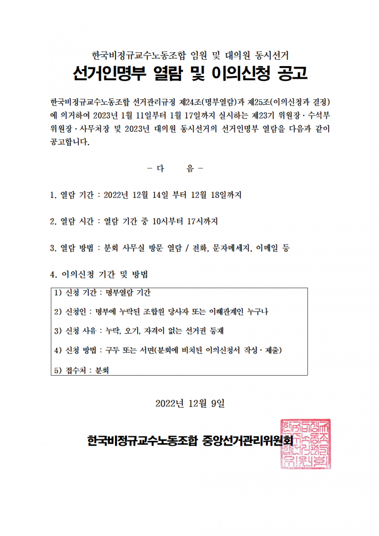 비정규교수노조 임원 및 대의원 동시선거 페이지 정보 작성자 관리자 작성일22-12-09 15:40 조회6,044회 댓글0건 이전글 다음글 목록 본문 추천 0 댓글목록 등록된 댓글이 없습니다. 이전글 다음글 목록